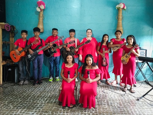 每一次短宣队去到印第安部落时,都会被由宣教士Johanna组建的敬拜团深深感动。很多孩子在认识Johanna之前并没有接触过任何乐器,可是就在2021年儿童中心成立后短短3年的时间,敬拜团在不断壮大。其中Belkis Martinez在她的成长报告中告诉她的捐助人:“我非常爱唱歌,热爱学习⾳乐,目前在教会青少年⾳乐崇拜事⼯中服事。Leandro牧师给我施了洗。”
